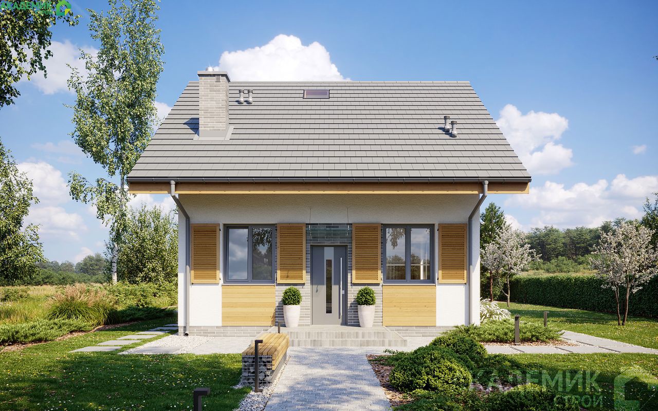- Облицовка фасада керамическим облицовочным кирпичом (может быть выполнена фасадной штукатуркой или другими облицовочными материалами).