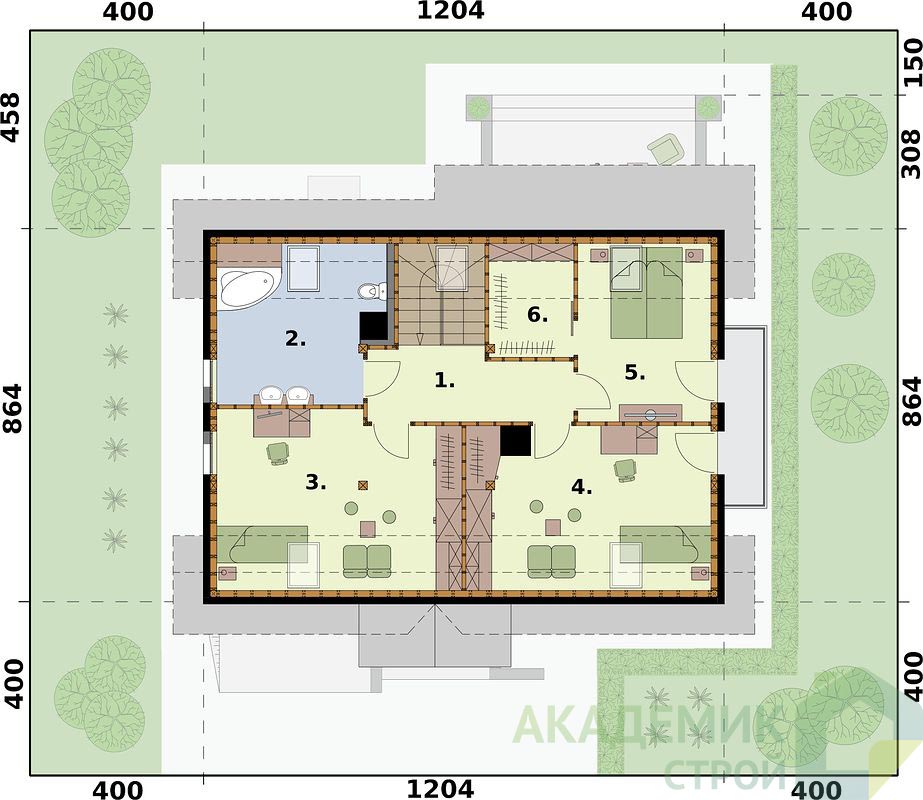 - Потолочное перекрытие 2–го этажа дома выполнено из деревянных балок камерной сушки.